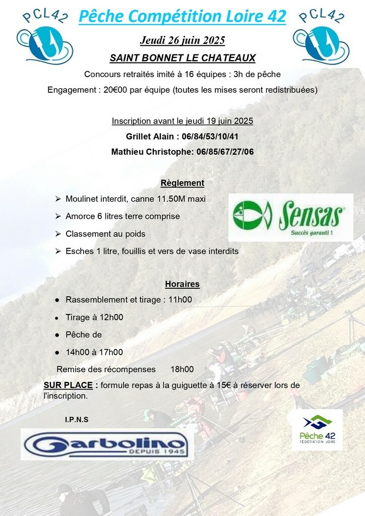 17 équipes étaient inscrites, le temps était au beau fixe et pas trop chaud par contre les poissons n’étaient pas très mordeurs . Malgré tout nous avons passé une très bonne journée. Un grand merci aux villes de St Bonnet le château et de la Tourrette pour l’entretien du plan d’eau ainsi qu'au Gardon forezien pour le prêt du parcours. Nous remercions également le Magasin Feeder shop et Fish and furious pour les magnifiques lots pour la tombola sans oublier la guinguette pour le repas et tous les copains du PCL42 pour l’organisation.