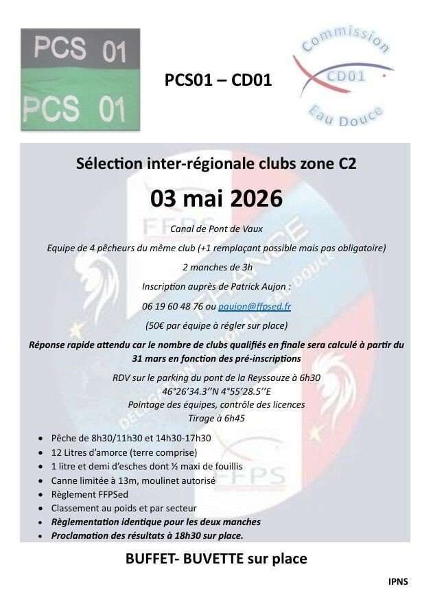 Sélection inter-régionale des clubs zone C2 organisée par le PCS01 sur le canl de Pont de Vaux (01).