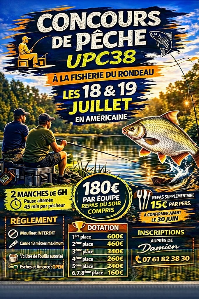 Concours en américaine organisé par l'UPC38. 2 manches de 6 heures. Moulinet interdit.